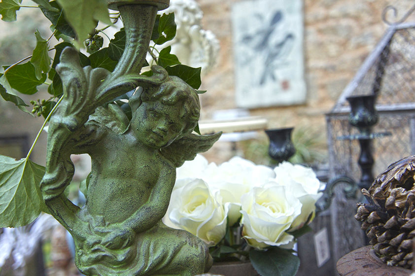 Mannequin en bois Médicis Miroir Pampille Photophore Porcelaine Statue de procession